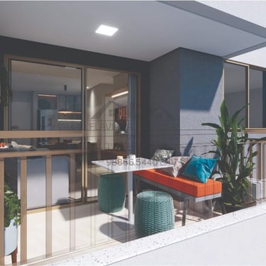 Salão de festas climatizado, Academia climatizada, Wc’s masculino e feminino, Brinquedoteca e Playground. O apartamento: varanda gourmet, bancada de granito, varanda gourmet com pontos de gás e elétrico e piso em porcelanato.