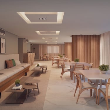 Salão de Festas; Salão de Jogos; Coworking e Sala de Estudos; Meeting Room; Lavanderia Compartilhada